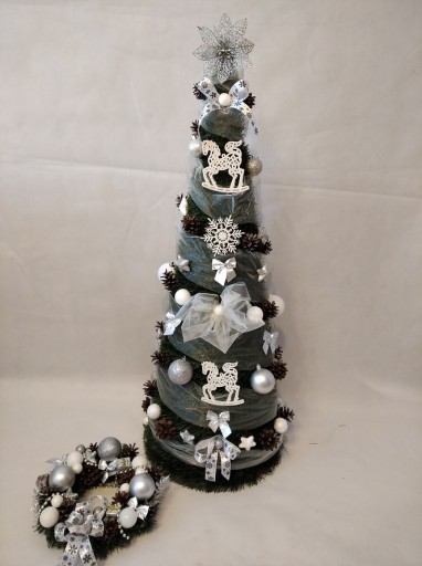 5. SREBRNO- BIAŁA Z STROIKIEM Z CHOINKĄ