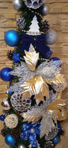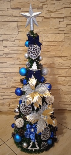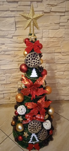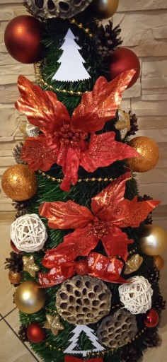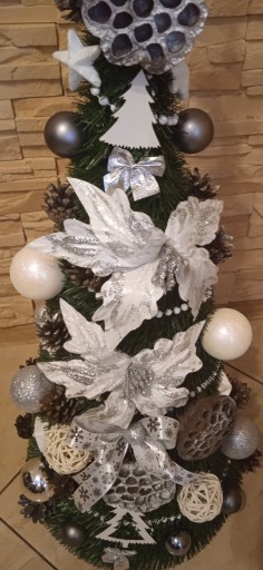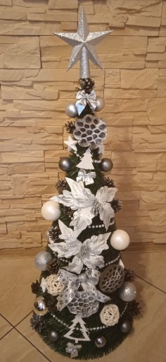 Wybieracie Państwo ogólną kolorystykę choinek która może się różnić od pokazanych zdjęć (proszę pamiętać iż jest to praca ręczna- artystyczna, a nie maszynowa! Nie otrzymacie Państwo choinki identycznej jak na zdjęciu lecz bardzo podobną!). Ogólnie zachowujemy kolorystkę choinki np. srebrno- czerwona.