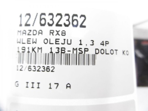 MAZDA RX8 МАСЛЯНОЗАЛИВНАЯ ВПУСКНОЙ КОЛЛЕКТОР 1.3