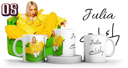 BILLIE EILISH + w cenie możliwość nadrukowania imienia lub innego tekstu na kubku.