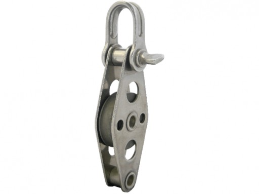 Pojedyńczy bloczek do lin stalowych, nierdzewny z trwałą rolką z tworzywa sztucznego. Parametry: