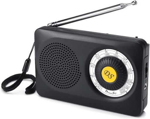 Przenośne radio z głośnikiem i gniazdem słuchawkowym marki DreamSky AM FM. Dobre radio kieszonkowe z wyraźnym dźwiękiem; mały kompaktowy rozmiar; zasilanie na baterie.