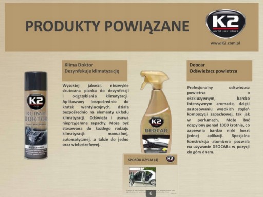 K2 KLIMA FRESH to niezwykle skuteczny i łatwy w użyciu środek do odświeżania klimatyzacji. Usuwa nieprzyjemne zapachy, które powstają na skutek zanieczyszczeń i wilgoci w układzie wentylacyjnym. Cały proces nie zabiera więcej niż kilkanaście minut. Nadaje się do każdego typu klimatyzacji. Po użyciu pozostawia świeży zapach.