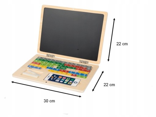 Drewniany laptop edukacyjny jest świetnym połączeniem tradycji i nowoczesności, umożliwiając dziecku zabawkę i naukę w przyjaznej formie, która zagwarantuje długie godziny zabawy.