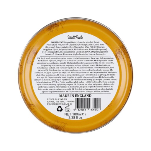 Pasta do stylizacji męskich fryzur. Charakteryzuje się typowym męskim zapachem wody kolońskiej. Gwarantuje trwałość stylizacji i matowe wykończenie.