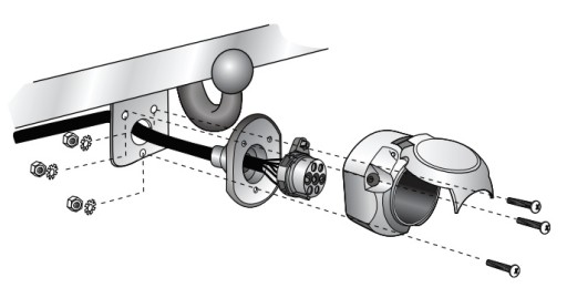 Pełni funkcję dodatkowego zabezpieczenia przed ewentualnymi zwarciami od strony instalacji elektrycznej przyczepy.