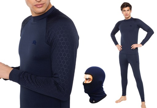 Komplet (bluza, getry, kominiarka) multifunkcyjnej bielizny termoaktywnej, wykonanej z najwyższej jakości komfortowej tkaniny, pomagającej utrzymać stałą temperaturę ciała. Posiada dodatkową ochronę antybakteryjną.
