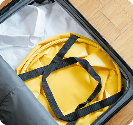 Cały zestaw Outdoor Wash Kit możesz złożyć. To sprawia, że akcesorium zajmuje naprawdę mało miejsca. Tym samym sprzęt zabierzesz ze sobą na biwak czy wakacje!