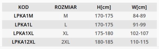 Poniżej tabela z rozmiarami dla lepszego doboru odzieży roboczej