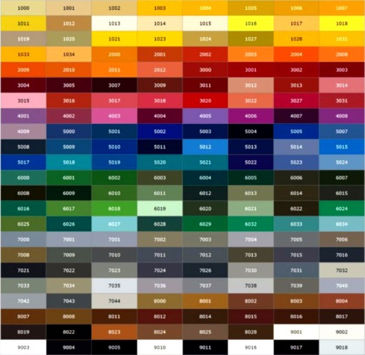 Powłokę ochronną możemy dobarwić wg dowolnie wybranego kolor. Z palety RAL (poniżej wzornik) lub dowolnie wybranego koloru niemetalicznego, metalicznego lub perłowego.