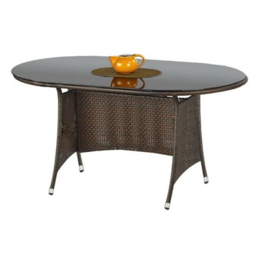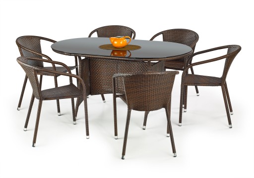 Został wykonany z rattanu w kolorze brązowym co gwarantuje odporność na warunki pogodowe oraz ułatwia dbanie o stół. Blat wykonany z czarnego szkła.