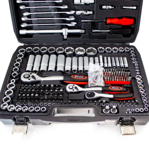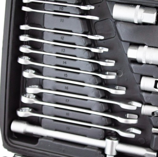 Zestaw zawiera grzechotki, nasadki, bity, przedłużki i wiele innych akcesoriów. Narzędzia wykonane z bardzo trwałej stali chromowo - vanadowej odpornej na uszkodzenia.