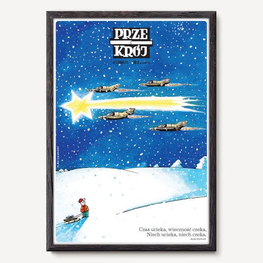 Plakat przedstawia okładkę 25. numeru „Przekroju” (Zima 2023) z grafiką Marka Raczkowskiego.