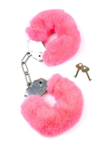 Metalowe kajdanki z futerkową osłonką o solidnym, regulowanym zapięciu.