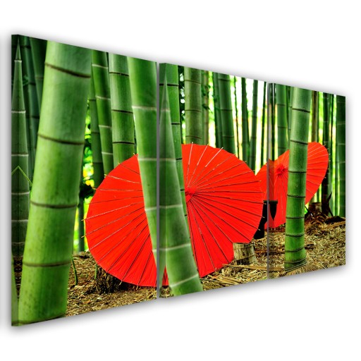 OBRAZ TRYPTYK Japonia Bambus Parasolki