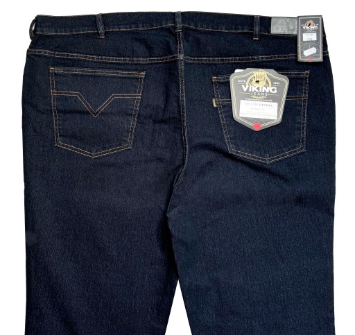 Duże męskie spodnie jeansowe VIKING posiadają dwie standardowe kieszenie z przodu i dwie z tyłu.