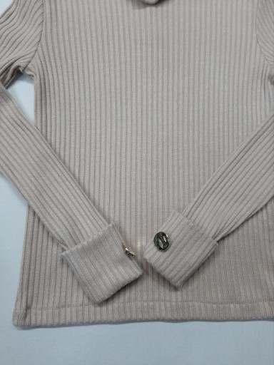 Golf z dzianiny prążkowanej, rękaw odwijany ozdobiony złotym guzikiem
