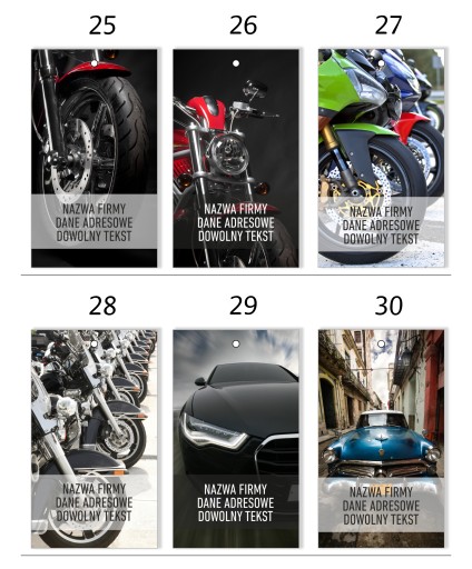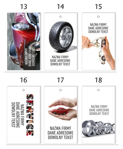 - swoje logo lub nazwę firmy oraz inne dane do umieszczenia na przodzie zawieszki