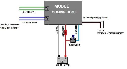 Moduł przeznaczony do pojazdów samochodowych z instalacją 12V. Moduł realizuje funkcje „Coming Home”