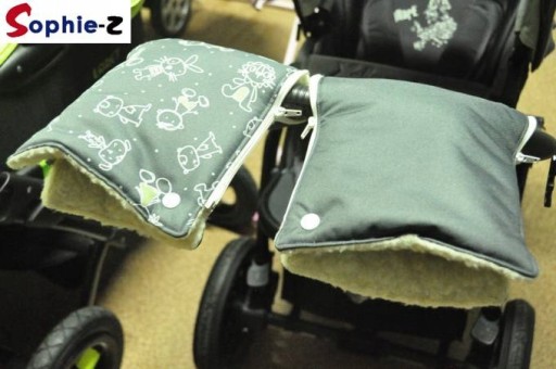 Dwie wysokiej jakości MUFKI - ocieplacze rąk do prowadzenia wózka dziecięcego, sanek itp. renomowanej polskiej marki Sophie-z