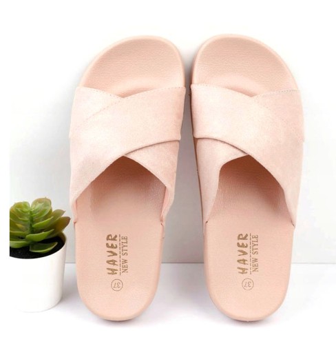 Nowość klapki damskie znanej i cenionej marki na gumowej podeszwie. Wierzch wykonany z lekko mieniącego się zamszu. Dwa krzyżujące się paski stabilnie podtrzymują stopę oraz świetnie prezentują się na nodze. Kolor bardzo kobiecy będzie pasował do każdej stylizacji. Idealne na letnie dnia !