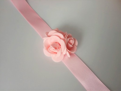 * różowej satynowej tasiemki o szerokość ok. 25mm i długość ok. 40cm,