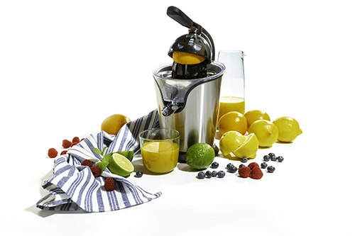 - Stalowa dźwignia lekko wyciska sok
