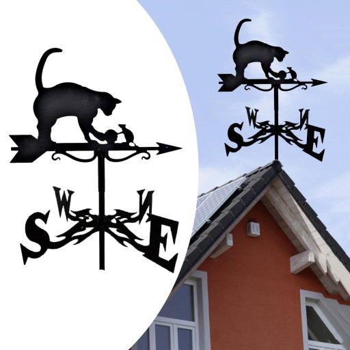 Retro metalowa wiatrowskaz wiatrowskaz wskaźnik kierunku wiatru kot i szczur