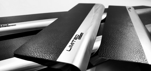 - Nakładki z stali kwasoodopornej (pokryte folią strukturalną) wycinane są metodą laserową,