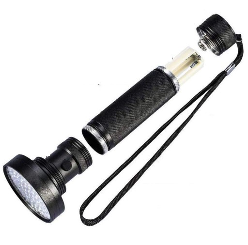 - Latarka UV ma 100 diod LED i emituje dużo światła UV, aby pokryć większy obszar.