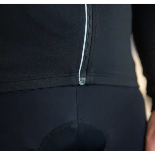 Bluza rowerowa Rogelli Caluso 2.0 została wykonana z elastycznego, ocieplanego od wewnątrz materiału Dynaflex 220. Wykorzystano także materiał Airlite Brushed S.T., który wyróżnia się bardzo dobrymi właściwościami termoregulacyjnymi. Silikonowy nadruk na krawędzi koszulki oraz elastyczne mankiety na końcach rękawów nie tylko zapewniają jeszcze lepsze dopasowanie do ciała, ale także sprawiają, że ubranie pozostaje cały czas na swoim miejscu i nie przesuwa się podczas jazdy. W tylnej części bluzy umieszczono potrójną kieszeń oraz dodatkową wodoodporną kieszonkę na zamek, która świetnie sprawdza się do przechowywania drobnych przedmiotów. Dodatkowo, tylna kieszeń zyskała odblaskowe wykończenie, co zapewnia wyższy poziom bezpieczeństwa poprzez poprawę widoczności rowerzysty na drodze.