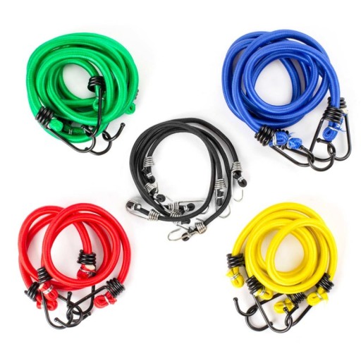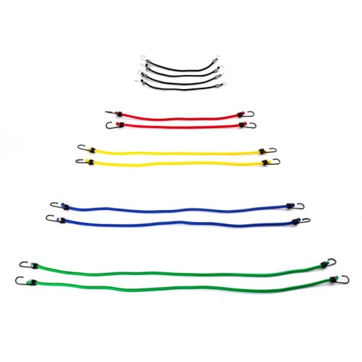 Zestaw 12 sztuk elastycznych linek do mocowania bagażu.