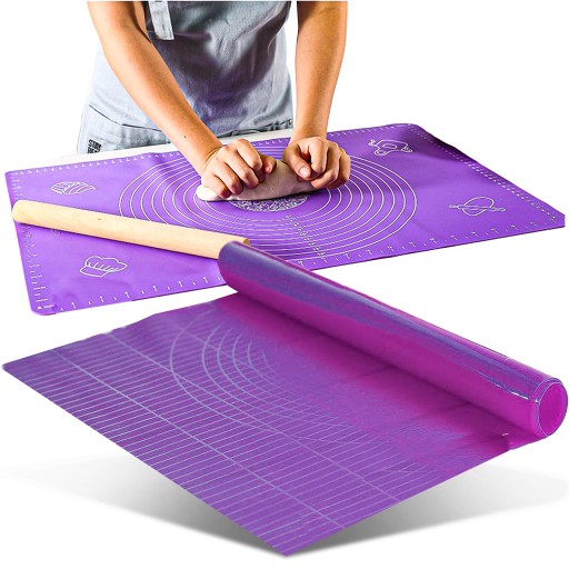 Stolnica silikonowa przykleja się do blatu, dzięki czemu nie ślizga się podczas wałkowania i nie niszczy go. Nie wchłania zapachów i nie przykleja się do ciasta. Mata silikonowa o rozmiarze 40x50 cm, to przedmiot którego nie może zabraknąć w Twojej kuchni!