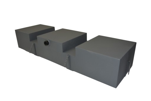 Zbiornik na szarą wodę wykonany z PCV, pokryty elastyczną masą kauczukową zabezpieczającą przed uderzeniami kamieni. Uzyskiwana powłoka o ostrej fakturze jest możliwa do pomalowania wszystkimi typami lakierów nawierzchniowych. Zbiornik dedykowany jest do „trojaczek” o długości L3 i L4: