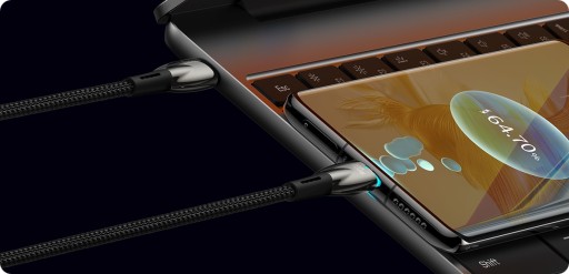 Podświetlany Wskaźnik Ładowania: Kablowi dodano podświetlany wskaźnik wokół końcówki, który informuje użytkownika o trwającym procesie ładowania, zwiększając tym samym jego funkcjonalność i ułatwiając użytkowanie w słabo oświetlonych warunkach.