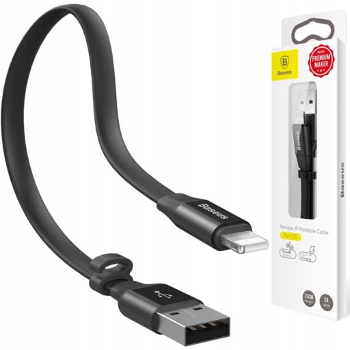 - Płaski kabel USB / Lightning o długości 23 cm. Do ładowania i przesyłania danych z urządzeń wyposażonych we wspomniane porty. Idealny dla powerbanków.
