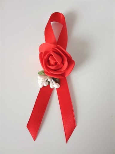 * czerwonej satynowej tasiemki o szerokości ok. 1,2cm,