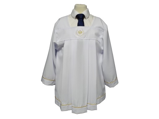 Przedmiotem sprzedaży jest alba komunijna krótka nowa, wykonana z poliestru.