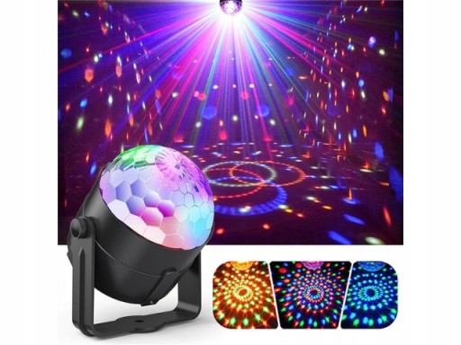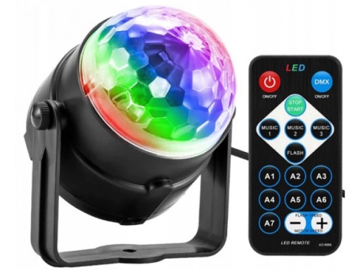 ✅Kompaktowy efekt świetlny LED odtwarza swój automatyczny program świetlny. Po włączeniu kula zaczyna świecić powodując efekt różnokolorowy, kolory zmieniają się wirują lub migają.