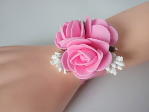 * różowej piankowej różyczki o średnicy ok. 3cm,