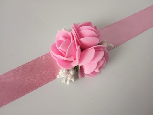 * trzech różowych piankowych różyczek o średnicy ok. 3cm,