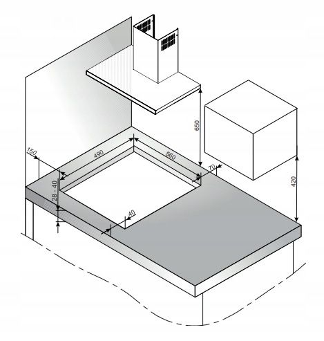 - Głębokość wnęki meblowej: 560 mm