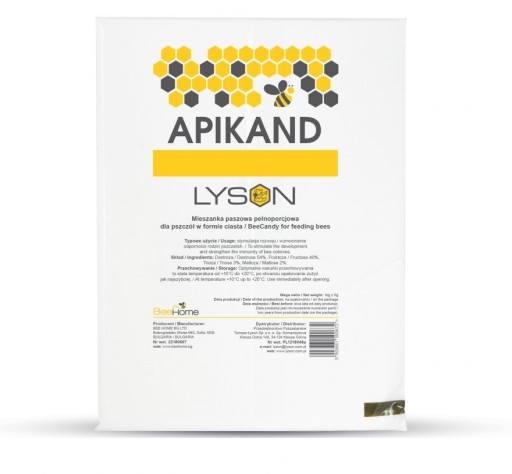 Apikand Zwykły Pokarm Ciasto dla pszczół KARTON 20kg