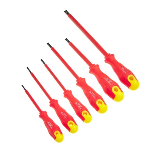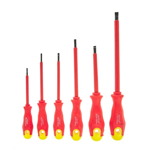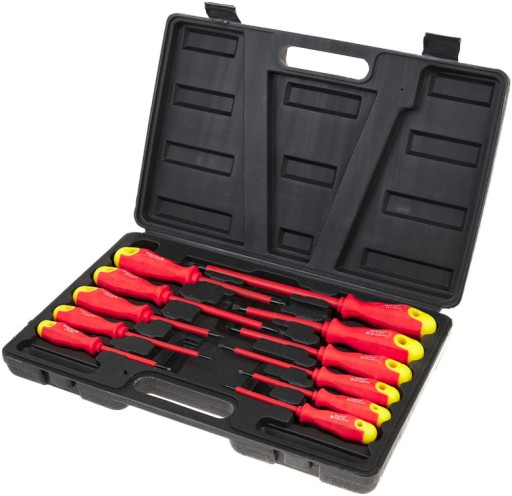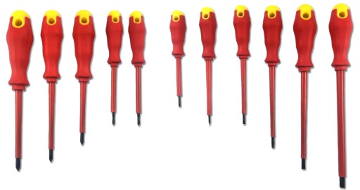 - Specjalistyczne wkrętaki izolowane do pracy pod wysokim napięciem. Wkrętaki zostały wykonane z wysokiej jakości stali chromowo-wanadowej, materiału wysoce izolującego oraz hartowanej końcówki