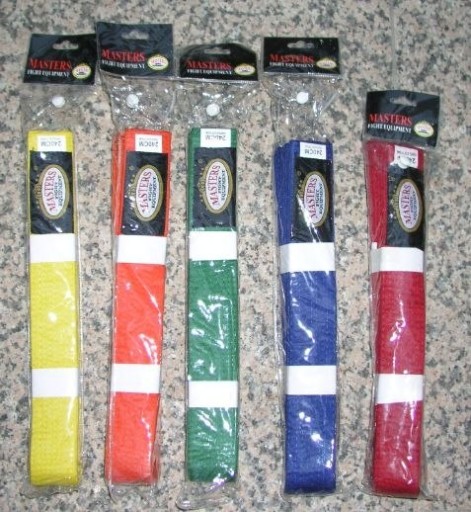 Pasy do sportów walki o szerokości 4 cm, różne kolory i długości.