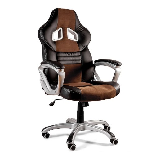 - Siedzisko oraz oparcie tapicerowane eko-skórą z dodatkami tkaniny materiałowej.
