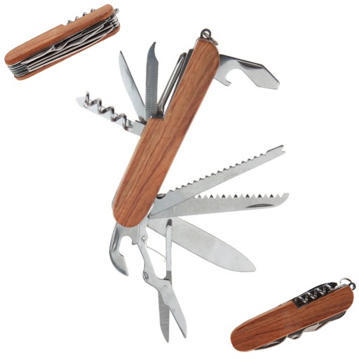 ✔️Są to: nóż, piła, skrobak do ryb, nożyczki, otwieracz do butelek, otwieracz do puszek, korkociąg, rozwierak, śrubokręt krzyżakowy, pilnik, szydło.