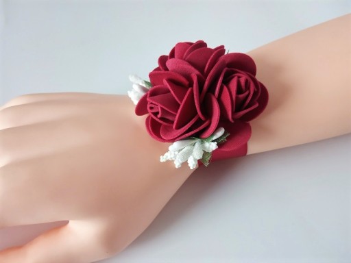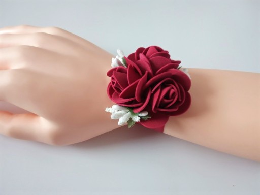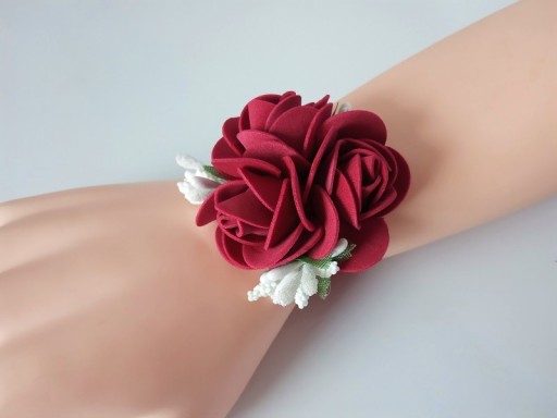 * trzech bordowych piankowych róż o średnicy ok. 3cm,