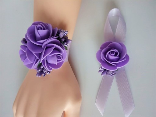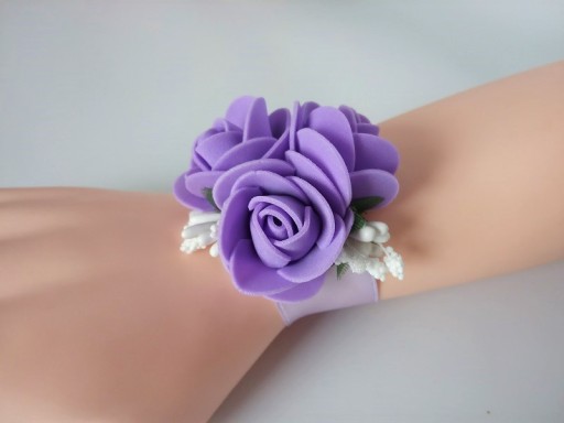 * trzech fioletowych piankowych róż o średnicy ok. 3cm,