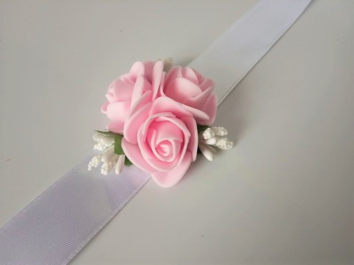 * różowej piankowej różyczki o średnicy ok. 3cm,